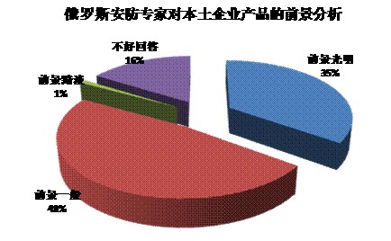 安防市場上,一些部門發(fā)現(xiàn)俄羅斯國產(chǎn)商品日漸取代了進(jìn)口設(shè)備。與西方相比,俄羅斯國內(nèi)制造商的主要優(yōu)點是低價位,且靈活性、適應(yīng)性強。安防技術(shù)社會學(xué)服務(wù)處的數(shù)據(jù)表明,35%的專家認(rèn)為俄羅斯安防市場的前景是好的;48%的認(rèn)為不夠好;1%認(rèn)為不好;16%的人覺得不好回答。
