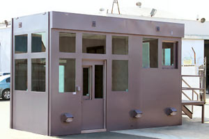 美國BIGEnterprises,公司開發(fā)了一款新型的檢查站崗?fù),外觀新穎、美觀。該崗?fù)さ臉?biāo)配裝置為球面窗戶,便于增加余角的可見度。型號(hào)偏大的檢查亭還會(huì)配置休息室和辦公區(qū)。