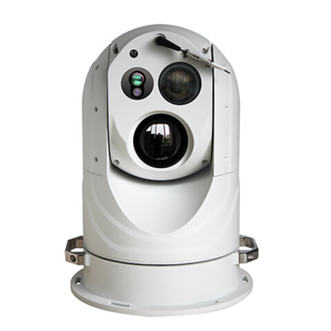 产品特点 | 该产品由可见光连续变焦一体化相机镜(含内智能运算及控制内核,即智能算力单元)、非制冷型热成像机芯、连续变焦热像镜头、激光测距机及伺服重载转台组成;可见光连续变焦一体化相机负责目标反射的可见光的采集成像,满足白天工作;热成像负责目标的红外辐射的成像,满足夜晚(或低照度情况)工作; |